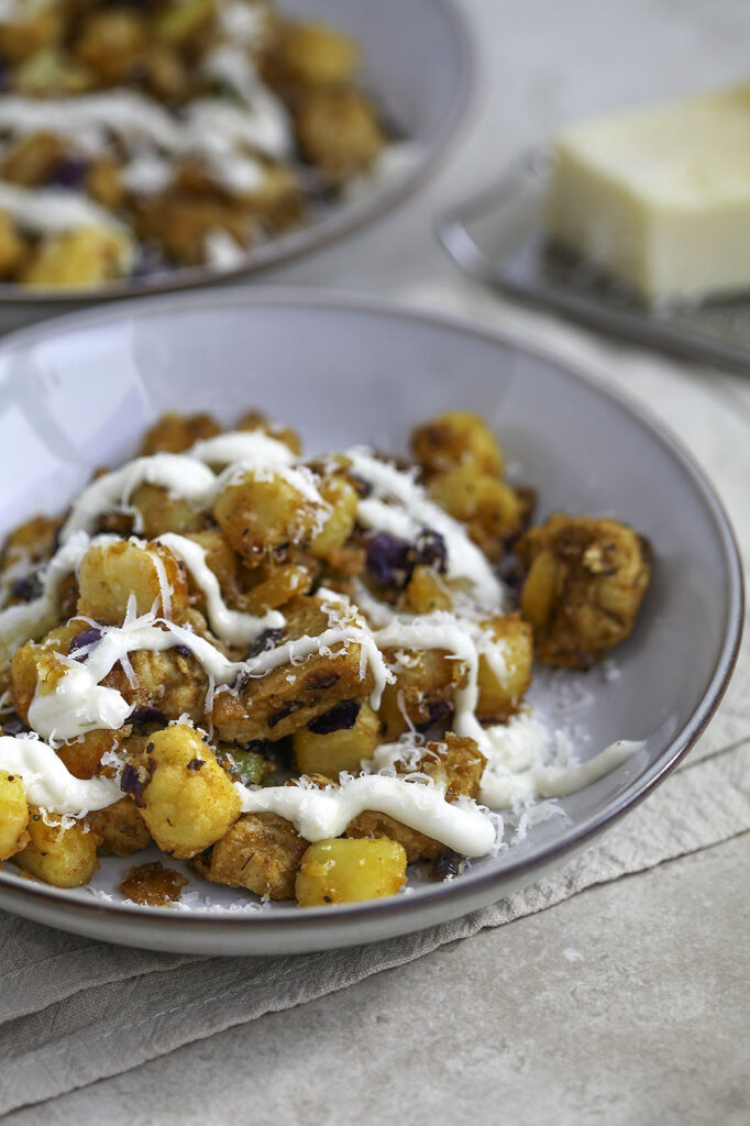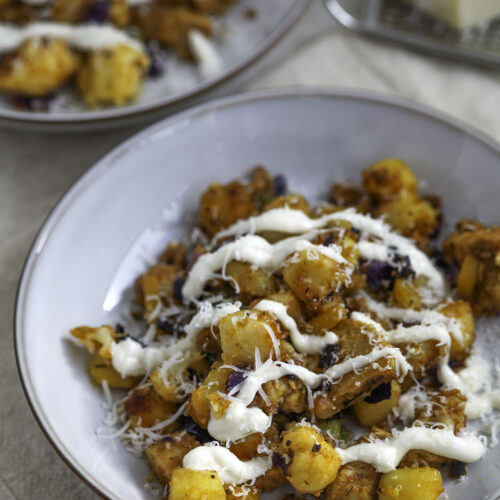 • Serveer direct met de rest van de knoflooksaus ernaast of eroverheen en eventueel nog een snuf chilivlokken bovenop.